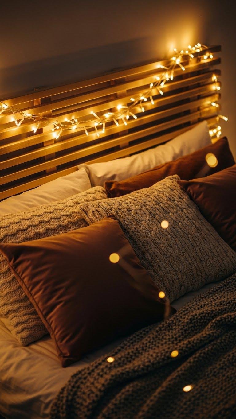 Wrapped around the headboard or threaded through the slats, fairy lights turn your bed into an intimate, twinkling sanctuary that feels both cozy and celebratory. You’ll drape strands to create a soft canopy, layering a warm glow against pillows and throws so the cozy texture of knits and velvet pops.
