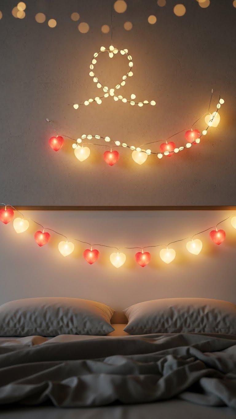 Heart-Shaped String Lights Above the Headboard