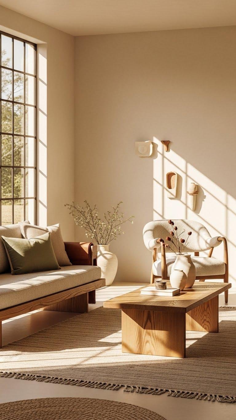 Pick natural fabrics, muted tones, and restrained proportions so the room breathes and you move freely.