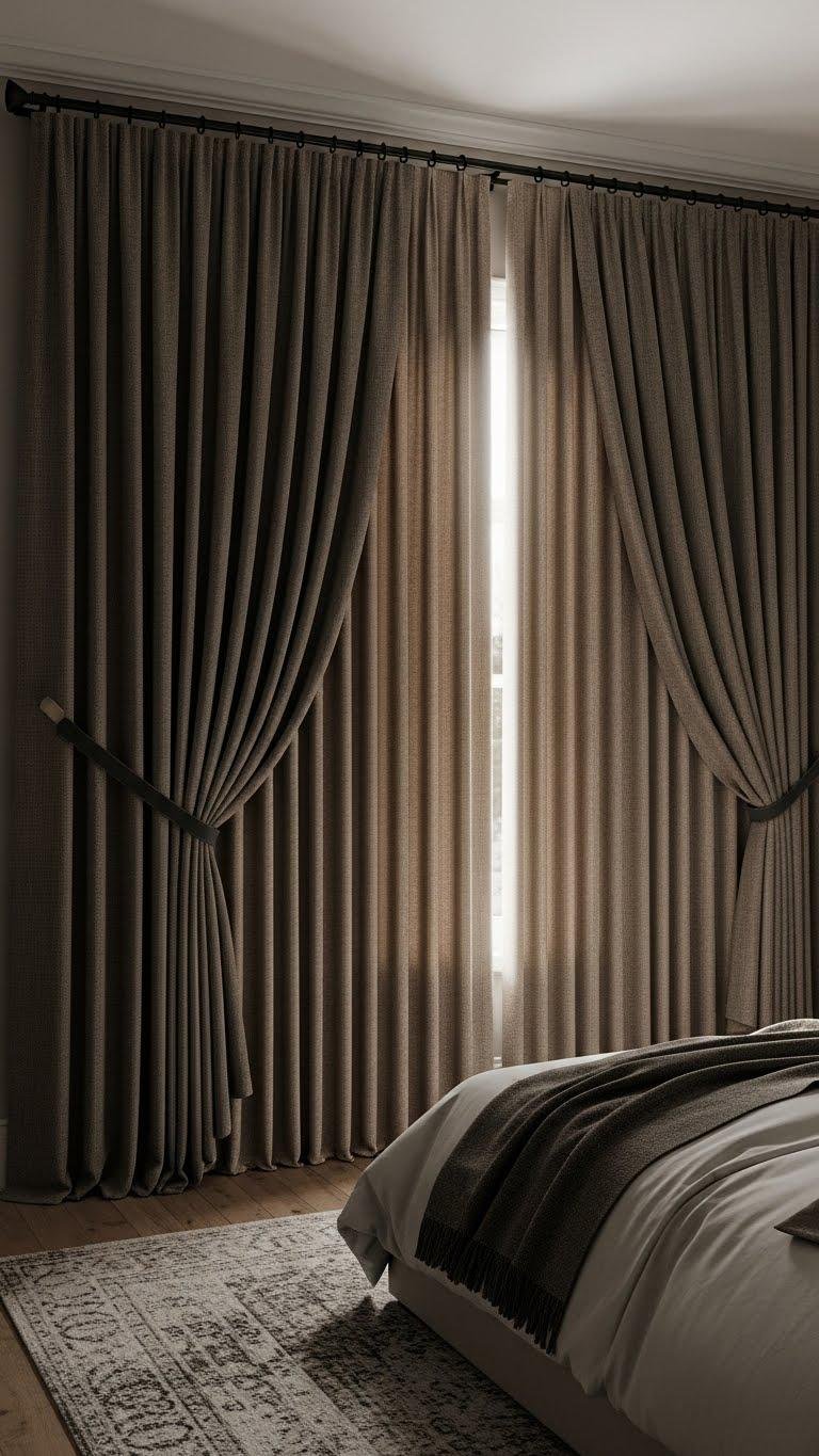 Invest in sturdy privacy hardware and tiebacks that let you control light, insulation, and mood.