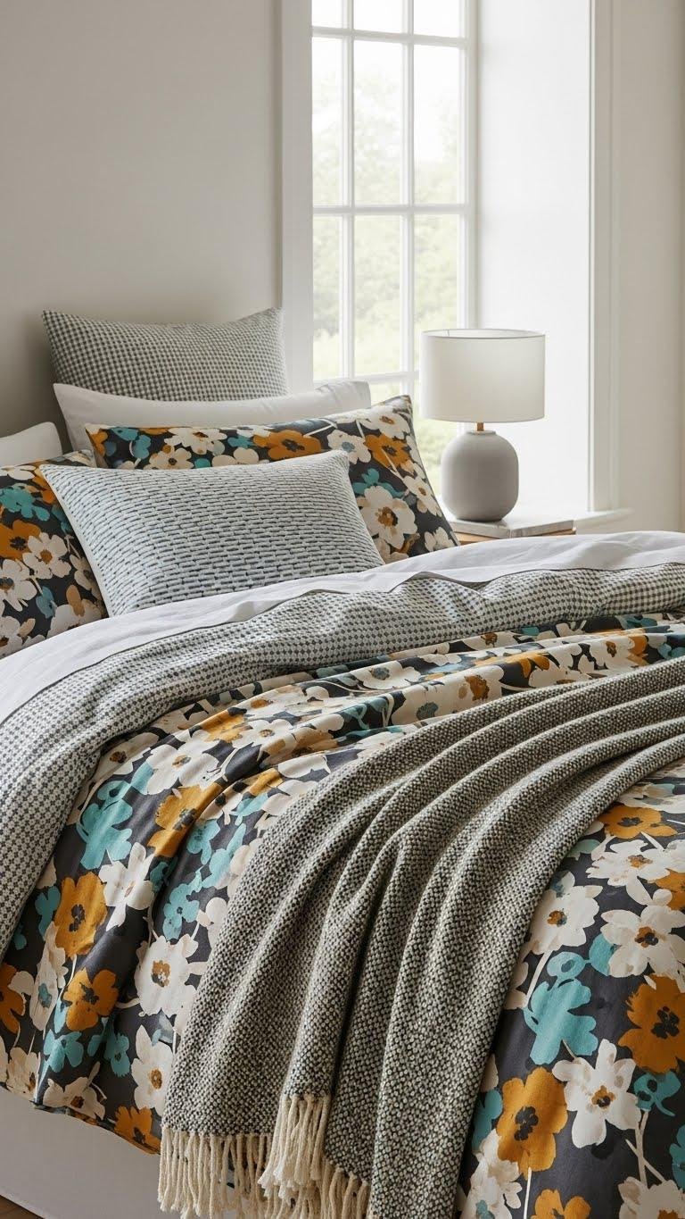 Choose durable cotton or flannel, layer a textured throw, and balance pattern with solid pillows so the room feels liberated, warm, and unmistakably yours.