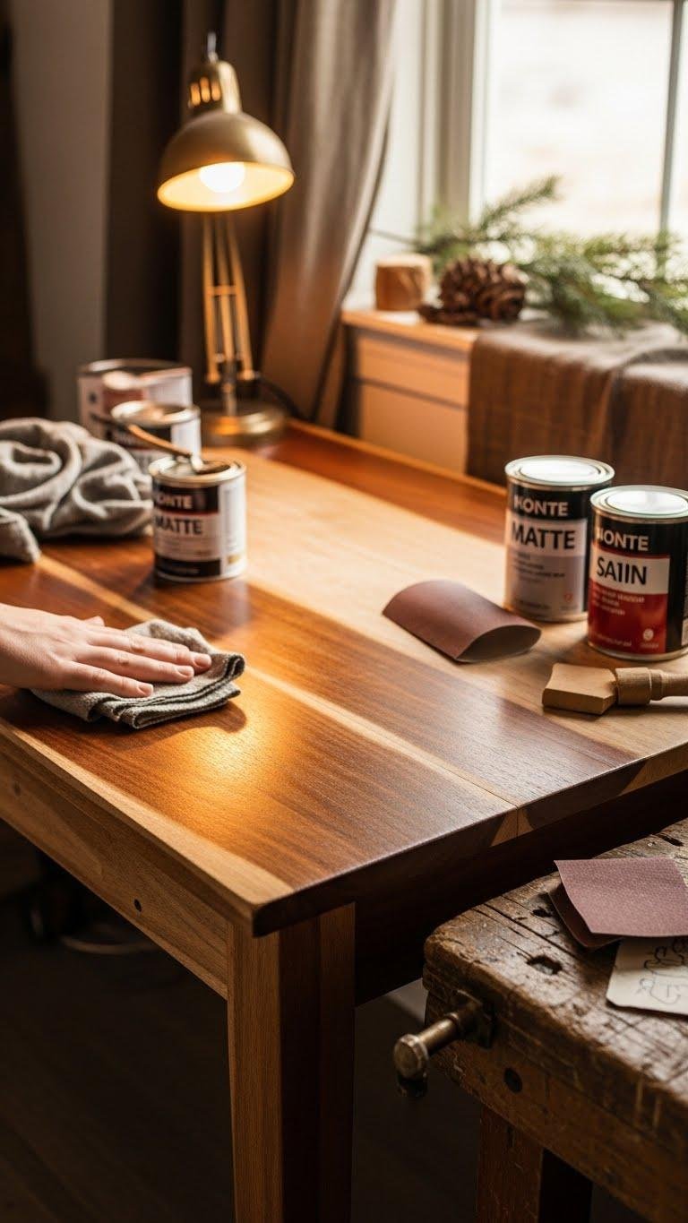 You’ll use straightforward restoration techniques to revive a thrifted table, focusing on grain enhancement and selective distressing. Choose matte or satin finishes, test stains on hidden spots, and sand between coats so pieces feel rugged, intentional, and ready for your liberated lifestyle.