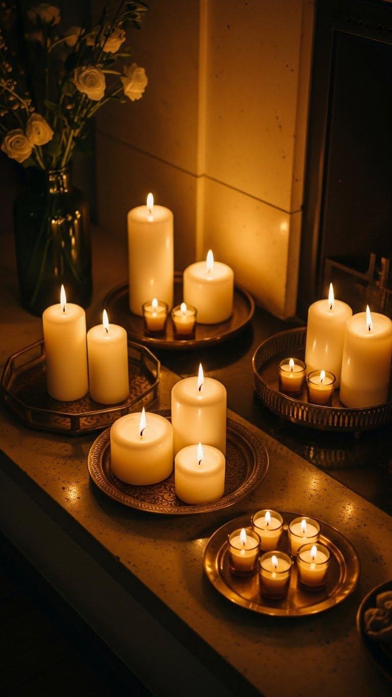 You’ll find that a thoughtfully arranged cluster of candles can transform a room into a warm, intimate retreat with minimal effort. Place scented pillars at varied heights on trays or hearths, mix in votive clusters for texture, and leave clear sightlines so flame and shadow roam. You’ll create cozy, liberated spaces that feel intentional without fuss.
